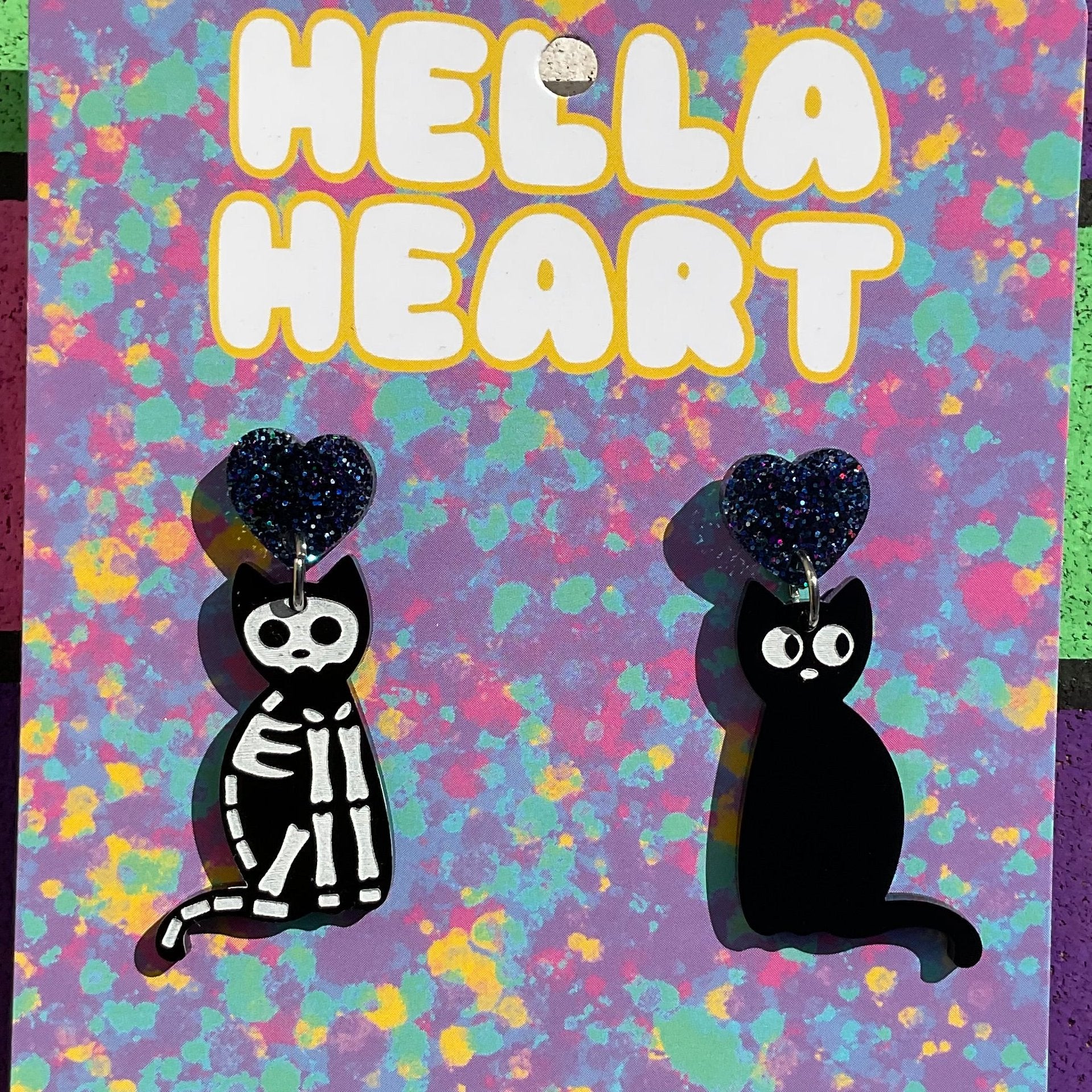 These hand painted etched acrylic earrings feature a cute black cat design and are made from lightweight, high quality material.